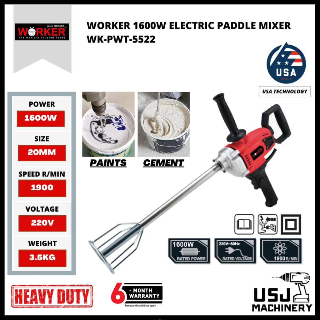 WORKER 1600W Electric Paddle Mixer WKPWT5522 Brand USA 6 Months